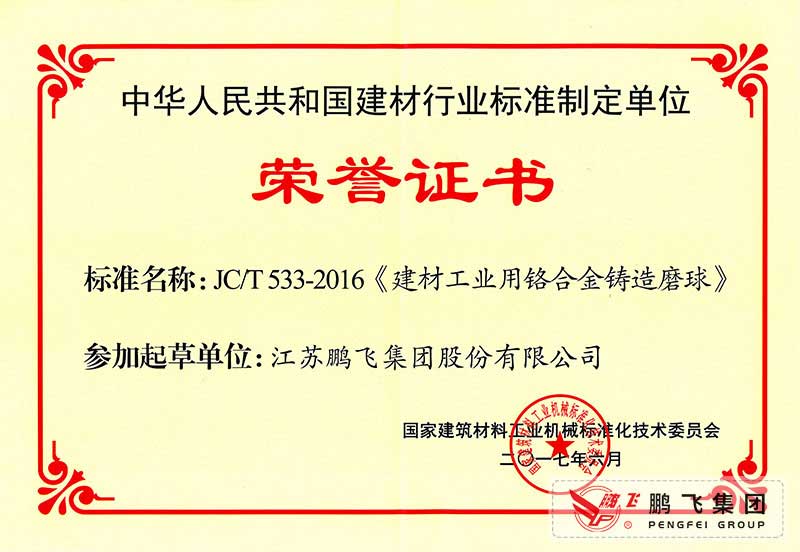(2017年6月21)鉻合金鑄造球磨行標起草證書