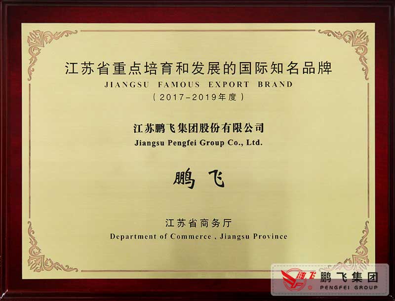 (2018年1月)江蘇省重點培育和發(fā)展的國際知名品牌獎牌
