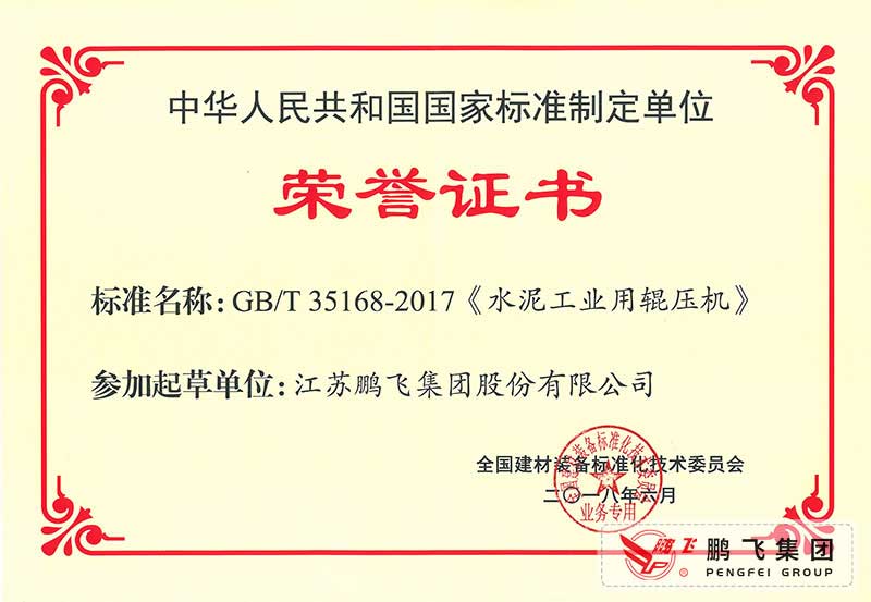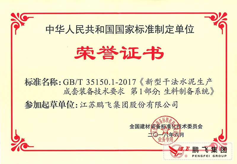 (2017年6月21)回轉(zhuǎn)窯國標起草證書技術(shù)標準優(yōu)秀獎