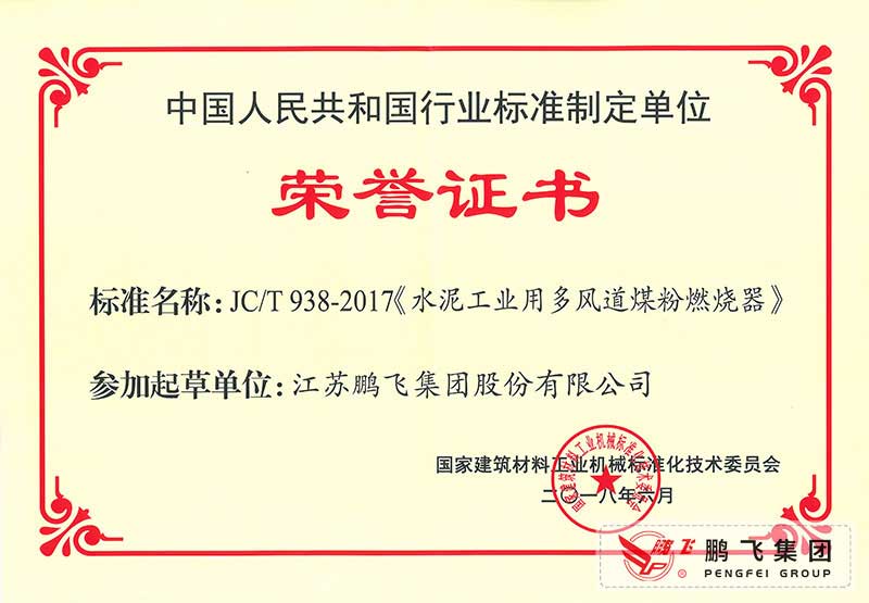 (2017年6月21)回轉(zhuǎn)窯國標起草證書