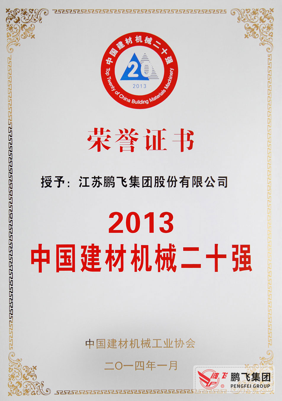 (2014年1月)建材機械20強(獎牌)