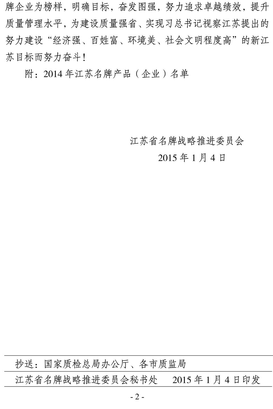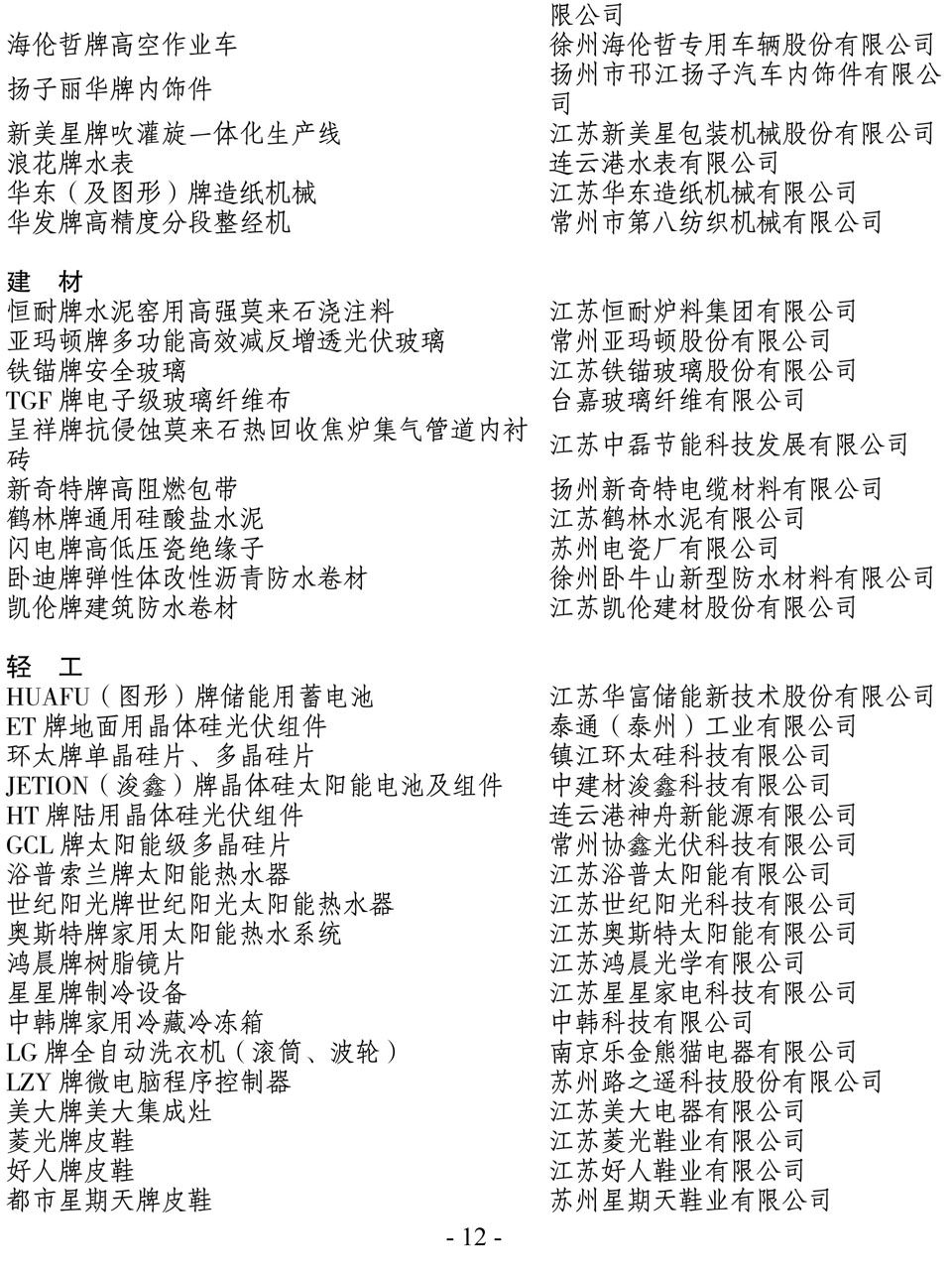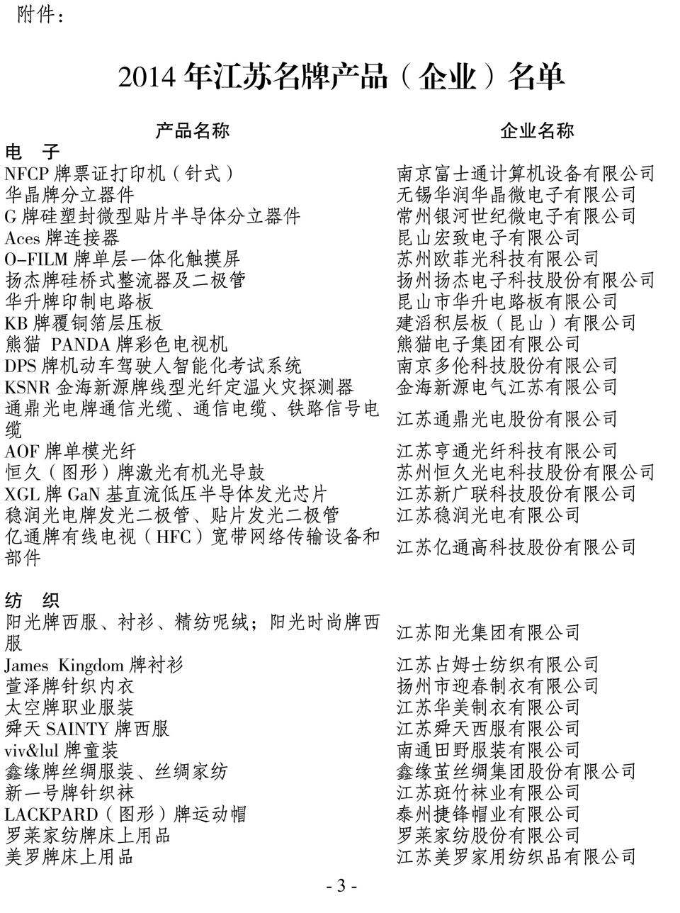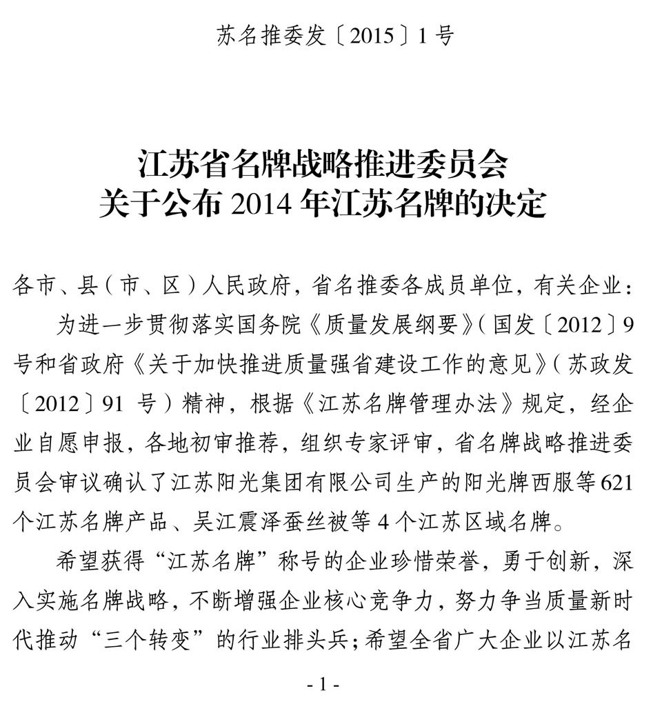 日前,江蘇省名牌戰(zhàn)略推進(jìn)委員會(huì)公布了2014年江蘇省名牌產(chǎn)品名單,“