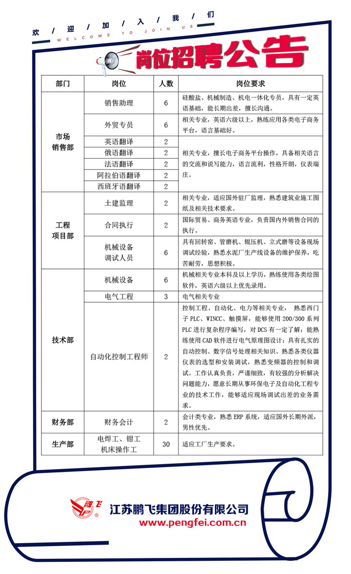 緊跟新時(shí)代,共筑鵬飛夢(mèng)——鵬飛集團(tuán)2018年招聘公告