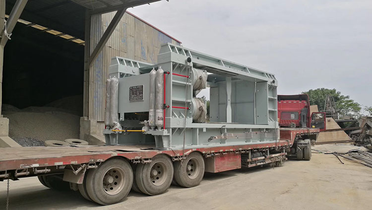 在項目施工現(xiàn)場鵬飛制造的PFG180-120輥壓機已進入安裝階段。