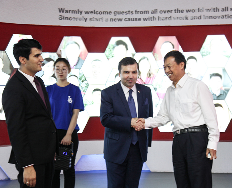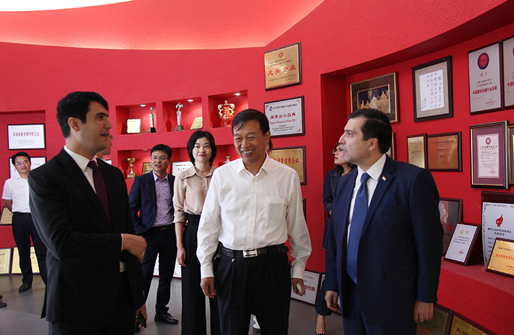 秋風(fēng)送爽,丹桂飄香。24日下午鵬飛集團迎來了尊貴的客人——塔吉克斯坦駐中國大使達夫拉·特佐達先生一行。大使先生在海安市宣傳部領(lǐng)導(dǎo)的陪同下,參觀考察鵬飛集團。