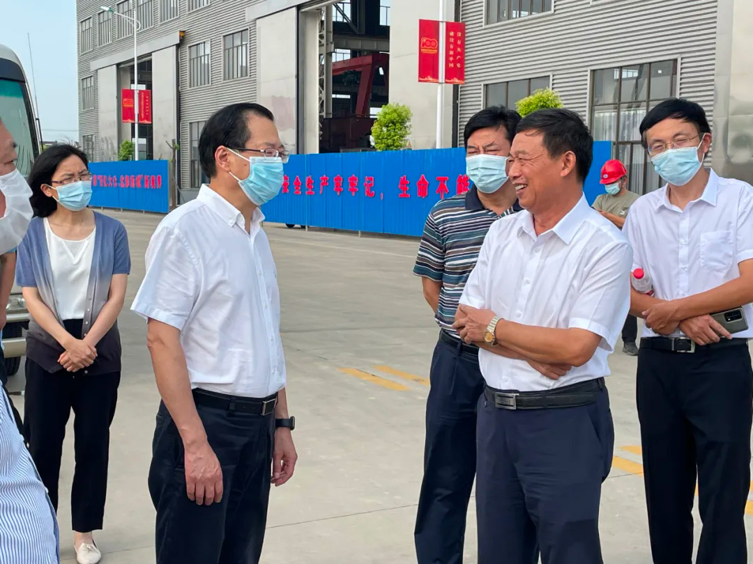 8月19日下午,南通市人大常委會(huì)副主任陳俊一行到江蘇鵬飛集團(tuán)調(diào)研重大項(xiàng)目推進(jìn)工作,海安市人大常委會(huì)主任、黨組書記張亞曦,副主任張忠宏、陳興俊,海安市副市長(zhǎng)丁興育陪同調(diào)研。大公鎮(zhèn)黨委書記金山存、人大主席王軍,江蘇鵬飛集團(tuán)股份有限公司董事長(zhǎng)王家安等參加活動(dòng)。