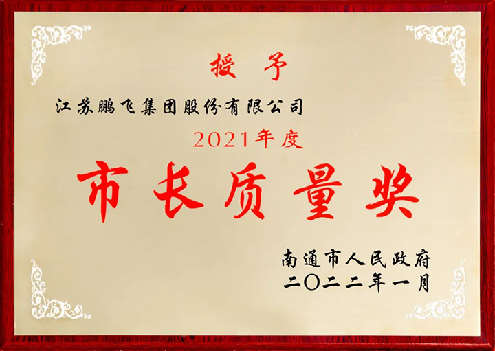 會(huì)上表彰了南通市獲得第四屆中國質(zhì)量獎(jiǎng)提名獎(jiǎng)、2021年江蘇省省長質(zhì)量獎(jiǎng)及提名獎(jiǎng)、第二批“江蘇精品”認(rèn)證的組織名單,頒發(fā)了2021年度南通市市長質(zhì)量獎(jiǎng)及提名獎(jiǎng),江蘇鵬飛集團(tuán)股份有限公司榮獲2021年度南通市市長質(zhì)量獎(jiǎng)。