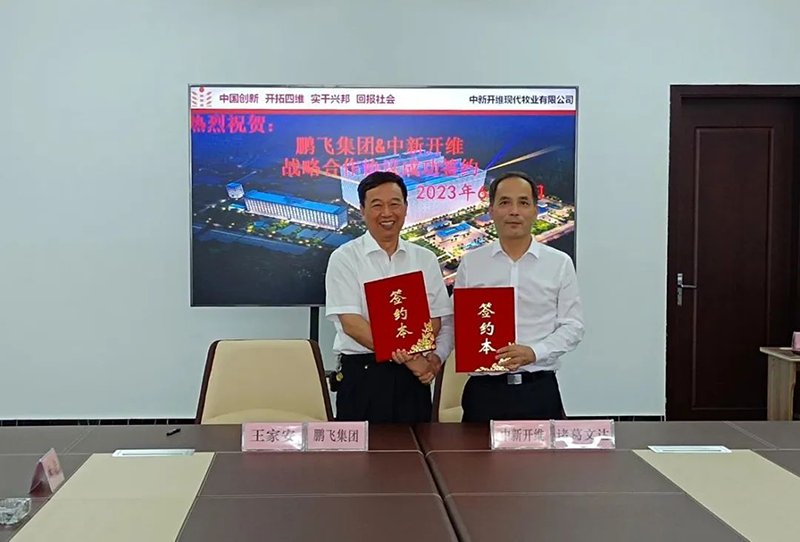 座談交流結(jié)束后,中新開維與鵬飛集團(tuán)共同簽訂了戰(zhàn)略合作協(xié)議,雙方將建立常態(tài)化交流聯(lián)系機(jī)制,加強(qiáng)全方位的合作,共謀高質(zhì)量發(fā)展新格局。衷心希望雙方以此次簽約為起點(diǎn),同心同向、攜手共進(jìn),把合作具體工作細(xì)化量化,推動水泥工業(yè)用回轉(zhuǎn)窯早日在食品生產(chǎn)領(lǐng)域創(chuàng)新應(yīng)用,打造食品行業(yè)規(guī)?;椭悄芑氖痉稑?biāo)桿,實(shí)現(xiàn)合作共贏,共創(chuàng)美好未來。
