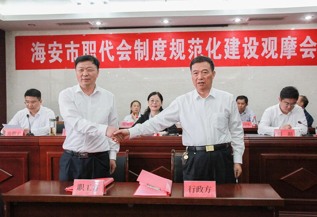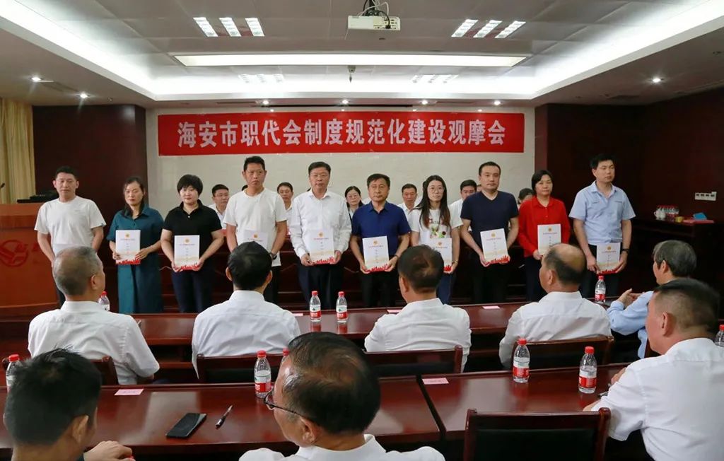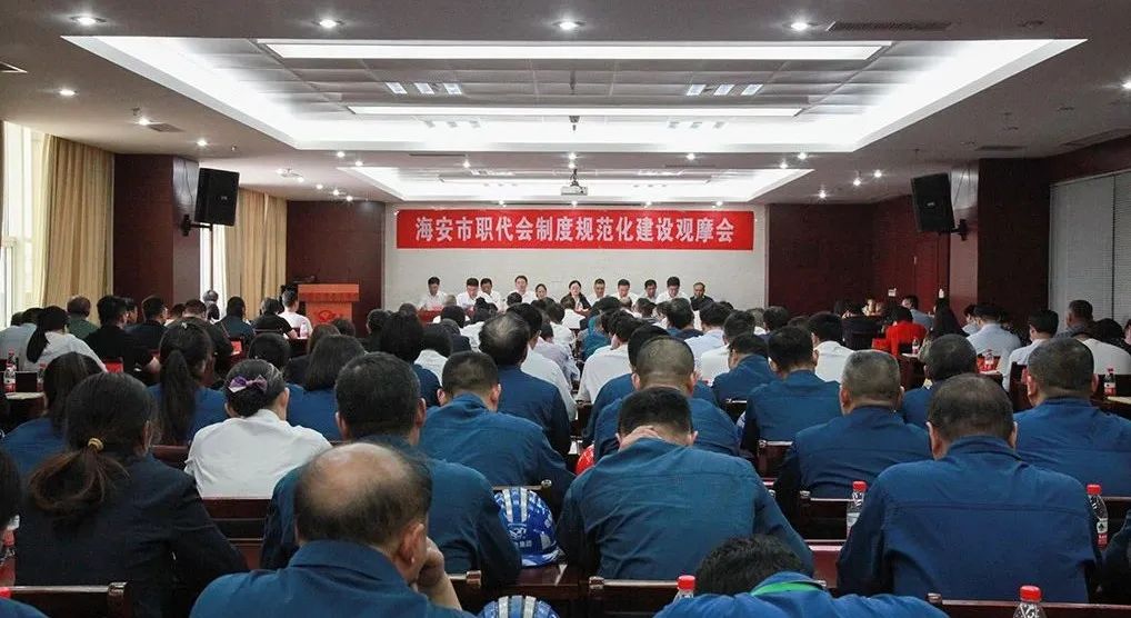 鵬飛集團職代會制度建設規(guī)范,以職代會為基本形式的基層民主管理制度體系健全程度名列前茅。借此契機,海安市總工會在鵬飛集團召開海安市職代會制度規(guī)范化建設觀摩會,來自全市40余名基層工會干部參加觀摩。