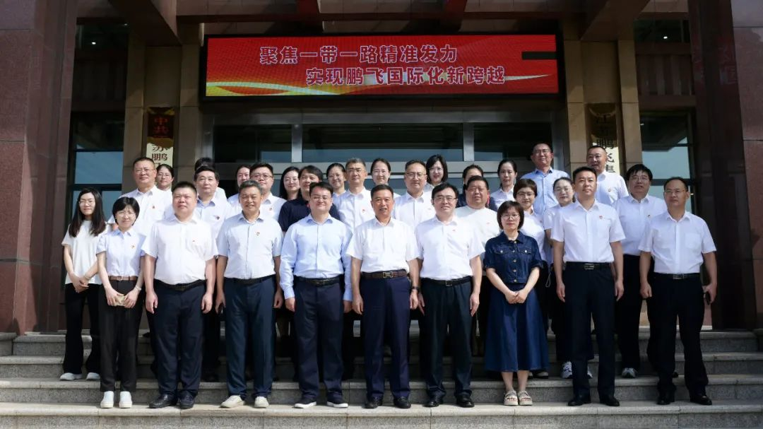 江蘇省科學(xué)技術(shù)情報(bào)研究所李敏所長一行來鵬飛調(diào)研,董事長王家安與他們合影留念