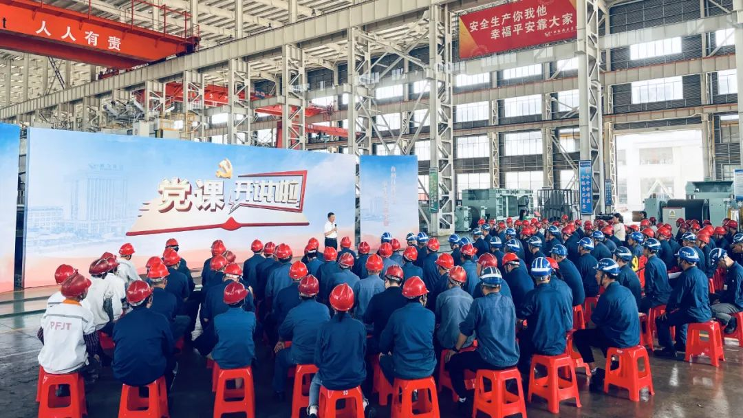 鵬飛集團(tuán)董事長王家安、副總經(jīng)理施鵬宇在生產(chǎn)一線為職工上黨課,鼓勵(lì)員工不斷加強(qiáng)學(xué)習(xí)、提高素質(zhì)、強(qiáng)化安全意識(shí)、勇于擔(dān)當(dāng)作為、注重團(tuán)隊(duì)協(xié)作