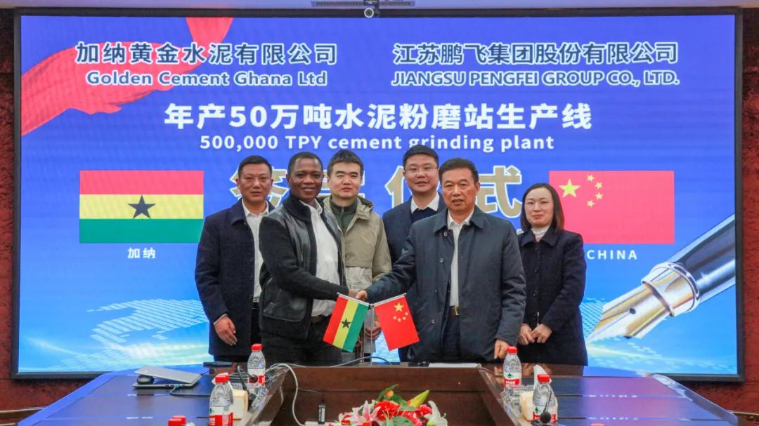 董事長王家安、副總經(jīng)理施鵬宇共同出席加納黃金水泥有限公司粉磨站簽約儀式