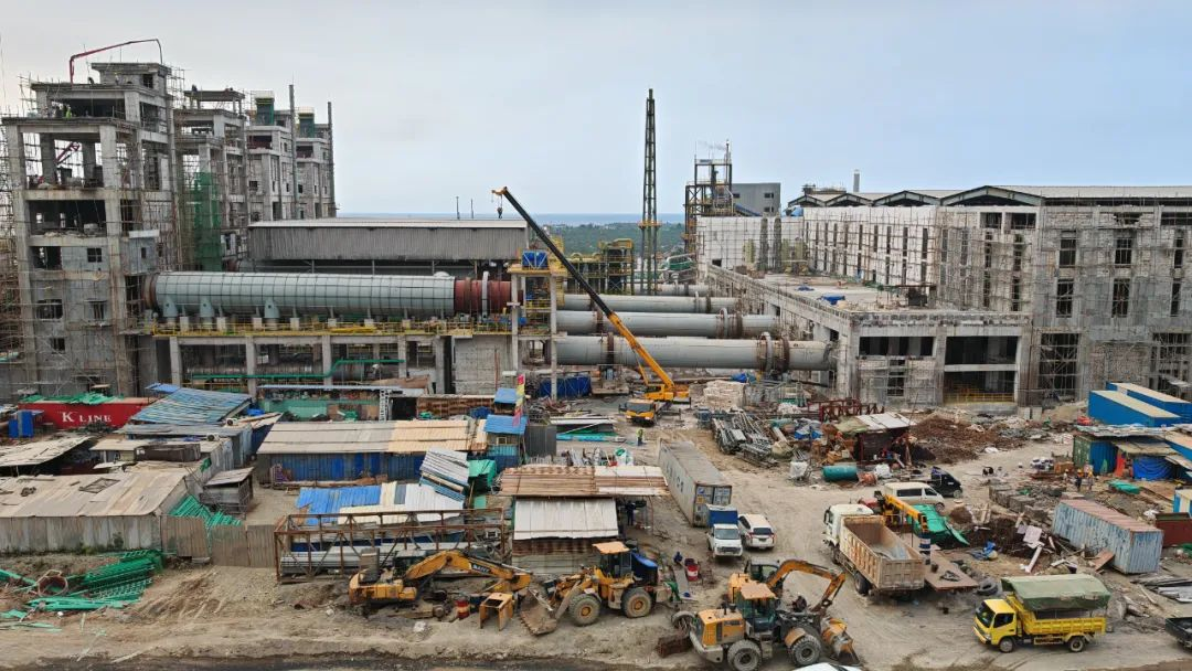鵬飛集團(tuán)生產(chǎn)的Φ5.5x115m 煅燒窯(2臺(tái)套)、Φ5.5x(50+3)m 烘干窯(2臺(tái)套)在恩菲(印尼紅土鎳礦)項(xiàng)目安裝現(xiàn)場