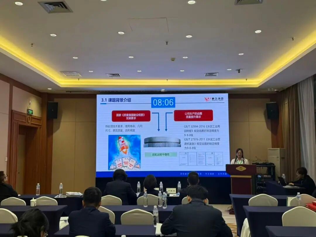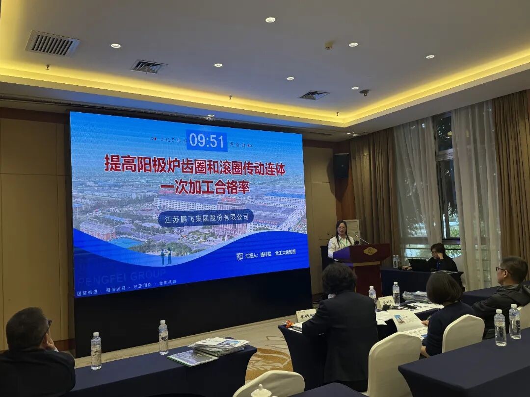 鵬飛金工QC小組發(fā)表成果《提高陽極爐齒圈和滾圈傳動連體一次加工合格率》。金工大齒輪組圍繞陽極爐齒圈和滾圈轉動連體加工中的變形和精度等問題,展開此次QC小組活動。小組利用創(chuàng)新工法的制定與實施,不僅提升了一次加工合格率18.2%,縮短了加工周期,還保障了產品的穩(wěn)定性,節(jié)約了成本。