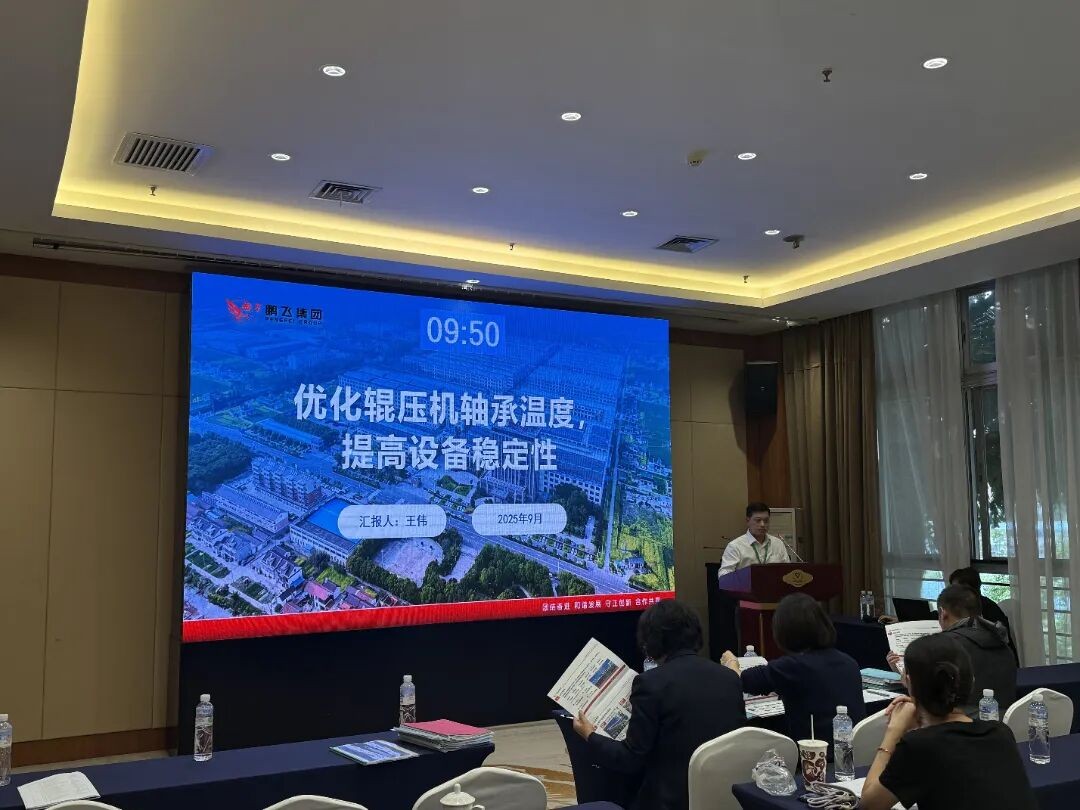 鵬飛集團輥壓機QC小組發(fā)表成果《優(yōu)化輥壓機軸承溫度,提高設備穩(wěn)定性》。輥壓機QC小組圍繞輥壓機軸承溫度高、冷卻水流量不穩(wěn)定等問題,通過優(yōu)化冷卻水路和潤滑系統(tǒng),規(guī)范安裝工藝。改進后軸承溫度降至50℃以內,設備綜合效率提高7%,壽命延長20%,顯著提升設備穩(wěn)定性,降低了能耗。