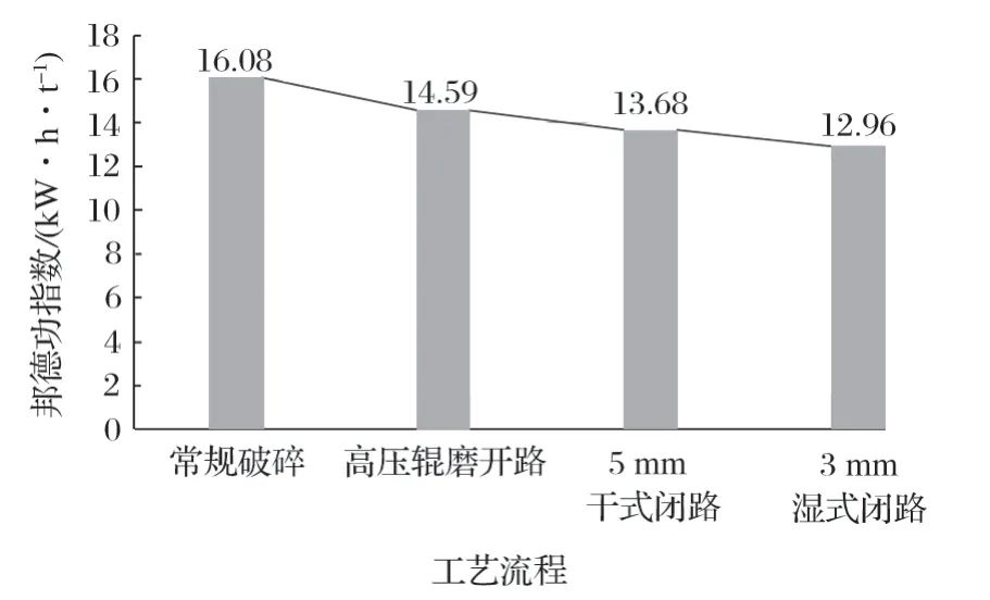 圖6 不同工藝流程邦德功指數(shù)對比