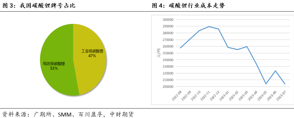 2、需求方面(1)廣東省作為國(guó)內(nèi)3C電子商品制造消費(fèi)大區(qū),其鋰電池產(chǎn)業(yè)基礎(chǔ)雄厚,擁有最完善的鋰電池產(chǎn)業(yè)鏈,涵蓋了從上游金屬礦產(chǎn)資源、電池材料,到中游電芯制造及PACK組裝,再到下游鋰電池應(yīng)用及電池回收利用的全產(chǎn)業(yè)鏈。(2)碳酸鋰的主要終端消費(fèi)為新能源產(chǎn)業(yè)(電動(dòng)汽車、儲(chǔ)能)及3C消費(fèi)類電池。根據(jù)市場(chǎng)反饋,2023年6月我國(guó)新能源汽車產(chǎn)銷分別完成78.4萬(wàn)輛和80.6萬(wàn)輛,同比分別增長(zhǎng)32.8%和35.2%,市場(chǎng)占有率達(dá)到30.7%。6月我國(guó)動(dòng)力電池產(chǎn)量共計(jì)60.1GWh,同比增長(zhǎng)45.7%,環(huán)比增長(zhǎng)6.3%。其中三元電池產(chǎn)量17.7GWh,占總產(chǎn)量29.4%,同比下降4.2%,環(huán)比下降4.9%;磷酸鐵鋰電池產(chǎn)量42.2GWh,占總產(chǎn)量70.3%,同比增長(zhǎng)86.3%,環(huán)比增長(zhǎng)11.7%。6月,我國(guó)動(dòng)力電池銷量共計(jì)52.2GWh,同比增長(zhǎng)9.9%。其中三元電池銷量18.4GWh,占總銷量35.2%,同比下降16.8%;磷酸鐵鋰電池銷量33.7GWh,占總銷量64.5%,同比增長(zhǎng)33.0%。6月,我國(guó)動(dòng)力電池裝車量32.9GWh,同比增長(zhǎng)21.8%,環(huán)比增長(zhǎng)16.5%。其中三元電池裝車量10.1GWh,占總裝車量30.6%,同比下降13%,環(huán)比增長(zhǎng)11.6%;磷酸鐵鋰電池裝車量22.7GWh,占總裝車量69.1%,同比增長(zhǎng)47.5%,環(huán)比增長(zhǎng)18.7%。(3)今年5月中旬開始,儲(chǔ)能市場(chǎng)需求逐漸向好,磷酸鐵鋰市場(chǎng)開工率上漲,帶動(dòng)了碳酸鋰的需求量,預(yù)計(jì)下半年儲(chǔ)能市場(chǎng)需求增量顯著。進(jìn)入7月份以后,隨著3C數(shù)碼市場(chǎng)出口貿(mào)易的訂單逐步完結(jié),需求又恢復(fù)平淡。動(dòng)力市場(chǎng)活躍度雖有增強(qiáng),但還未完全恢復(fù),終端的汽車動(dòng)力電池需求量仍較為有限。正極材料企業(yè)多有備貨,碳酸鋰高價(jià)向下傳導(dǎo)困難,放緩了備貨節(jié)奏,觀望市場(chǎng)走勢(shì),采購(gòu)較為謹(jǐn)慎。(4)下游企業(yè)基本采用隨行就市的報(bào)價(jià)模式,根據(jù)原材料價(jià)格來(lái)擬定交易合同。開工率受訂單影響,上半年動(dòng)力市場(chǎng)訂單狀況不佳,總體較去年沒有穩(wěn)定增長(zhǎng);3C消費(fèi)端海外訂單增量明顯,進(jìn)出口貿(mào)易狀況良好;儲(chǔ)能市場(chǎng)逐步增量,但訂單、需求、價(jià)格等向上傳導(dǎo)仍需時(shí)間,目前碳酸鋰的需求端情況仍較弱。(5)今年碳酸鋰價(jià)格大幅下跌,上游貿(mào)易商違約率不高。國(guó)內(nèi)訂單在市場(chǎng)價(jià)格波動(dòng)劇烈的影響下,視價(jià)格行情分成兩種情況,原材料價(jià)格上漲時(shí),上游企業(yè)較為強(qiáng)勢(shì),原材料價(jià)格下跌時(shí),下游較為強(qiáng)勢(shì),會(huì)取消原有訂單報(bào)價(jià),簽署新訂單。出口的貿(mào)易訂單極少違約,且因今年碳酸鋰價(jià)格回落的緣故,今年新開工生產(chǎn)的銷售利潤(rùn)率較高。(6)目前下游的供應(yīng)和銷售情況皆平穩(wěn),原料庫(kù)存一般維持在2周左右。