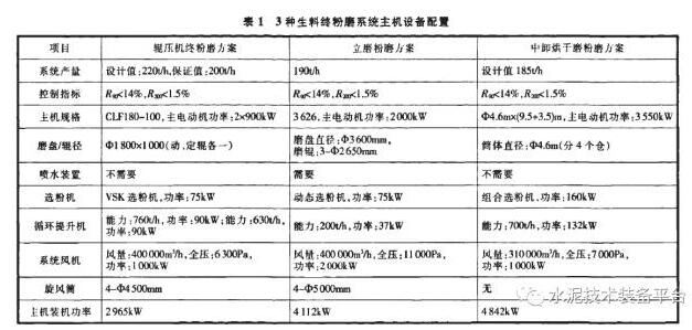 鵬飛就中卸烘干磨、立磨和輥壓機生料終粉磨方案比較