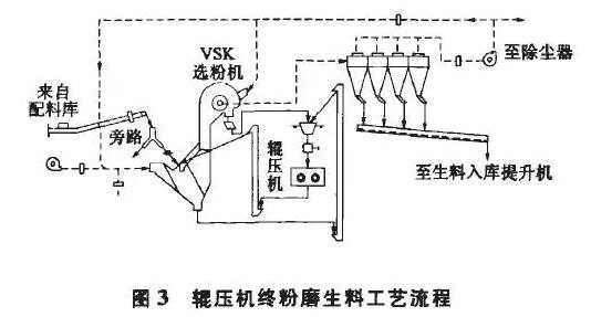 輥壓機終粉磨生料工藝流程圖見圖3.