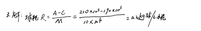 3、一臺磨機第一次裝入研磨體的質量是210t,中間無補球,經(jīng)過粉磨10萬噸水泥后清倉,清倉后研磨體的總質量為190t(不含碎球和過小的球),求該種研磨體球耗。