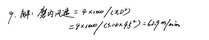 9、某廠水泥磨的通風量為1000m3/min,磨機規(guī)格為φ4.5*15m,試計算磨內(nèi)的風速大約是多少?