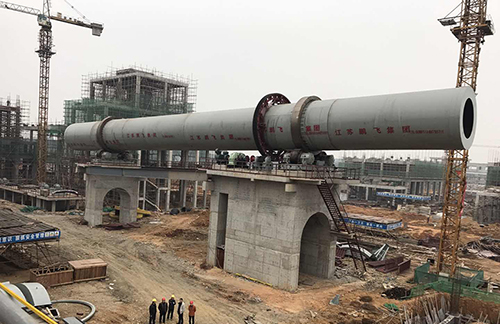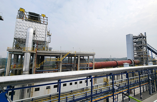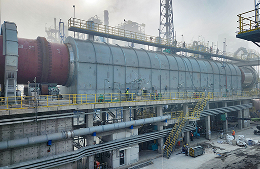 轉(zhuǎn)化焙燒:鋰輝石精礦從精礦庫人工送至斗式提升機提升至精礦倉,再經(jīng)圓盤給料機和螺旋給料機加入碳酸鋰回轉(zhuǎn)窯窯尾,利用窯尾預熱段高溫氣體干燥精礦,精礦在煅燒段約1200℃左右的溫度下進行晶型轉(zhuǎn)化焙燒,由α型(單斜晶系,密度3150kg/m3)轉(zhuǎn)化為β型鋰輝石(四方晶系,密度2400kg/m3,即焙料),轉(zhuǎn)化率約98%。