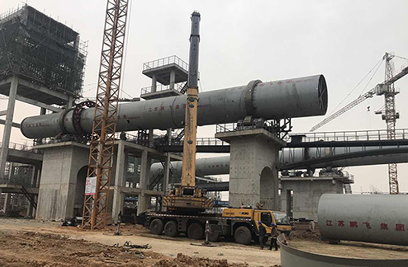 轉(zhuǎn)化焙燒:鋰輝石精礦從精礦庫(kù)人工送至斗式提升機(jī)提升至精礦倉(cāng),再經(jīng)圓盤給料機(jī)和螺旋給料機(jī)加入碳酸鋰回轉(zhuǎn)窯窯尾,利用窯尾預(yù)熱段高溫氣體干燥精礦,精礦在煅燒段約1200℃左右的溫度下進(jìn)行晶型轉(zhuǎn)化焙燒,由α型(單斜晶系,密度3150kg/m3)轉(zhuǎn)化為β型鋰輝石(四方晶系,密度2400kg/m3,即焙料),轉(zhuǎn)化率約98%。